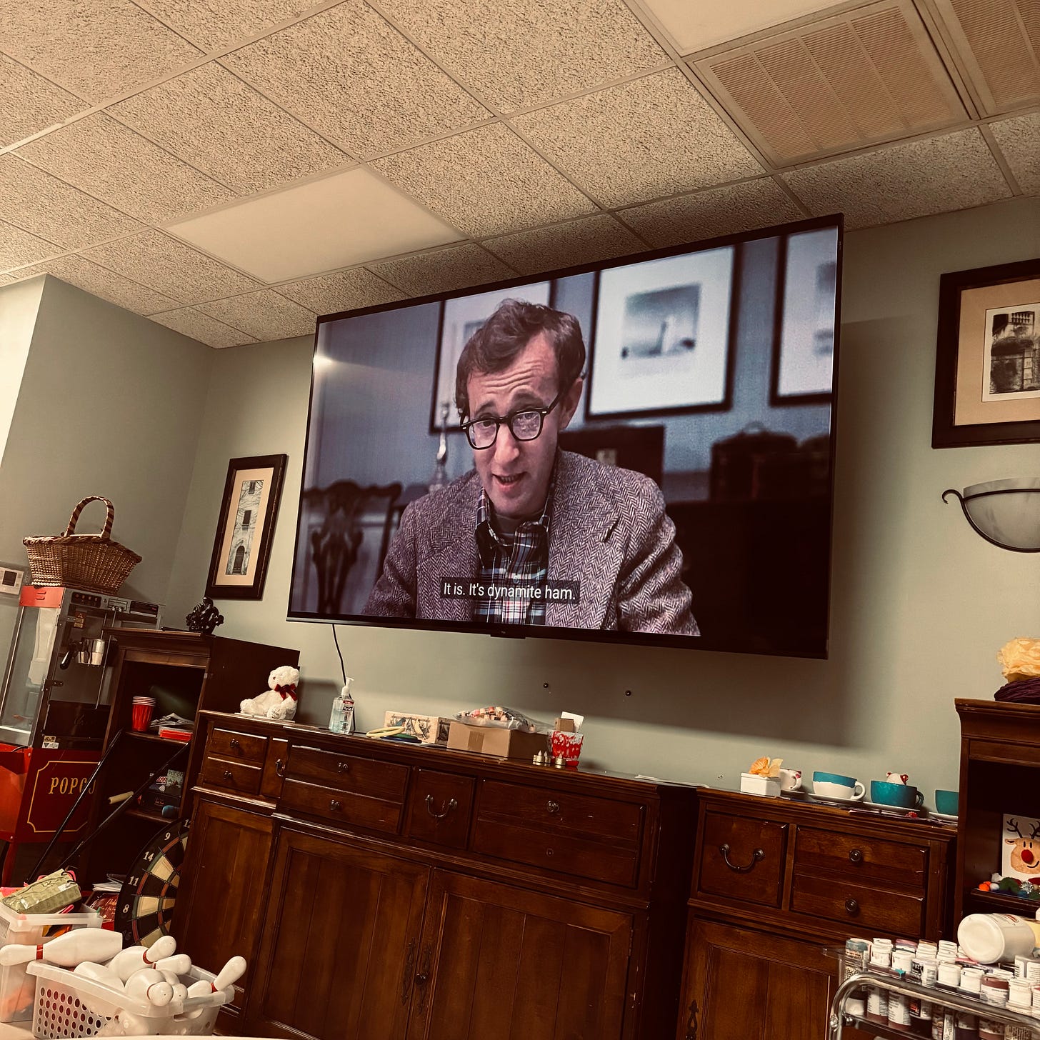 Last night, Mom’s care home screened Annie Hall, of all things, for the residents. This is one of my mother’s all-time favorite movies, and the Alzheimers means she has no memory of anything Woody Allen’s been up to since it came out.