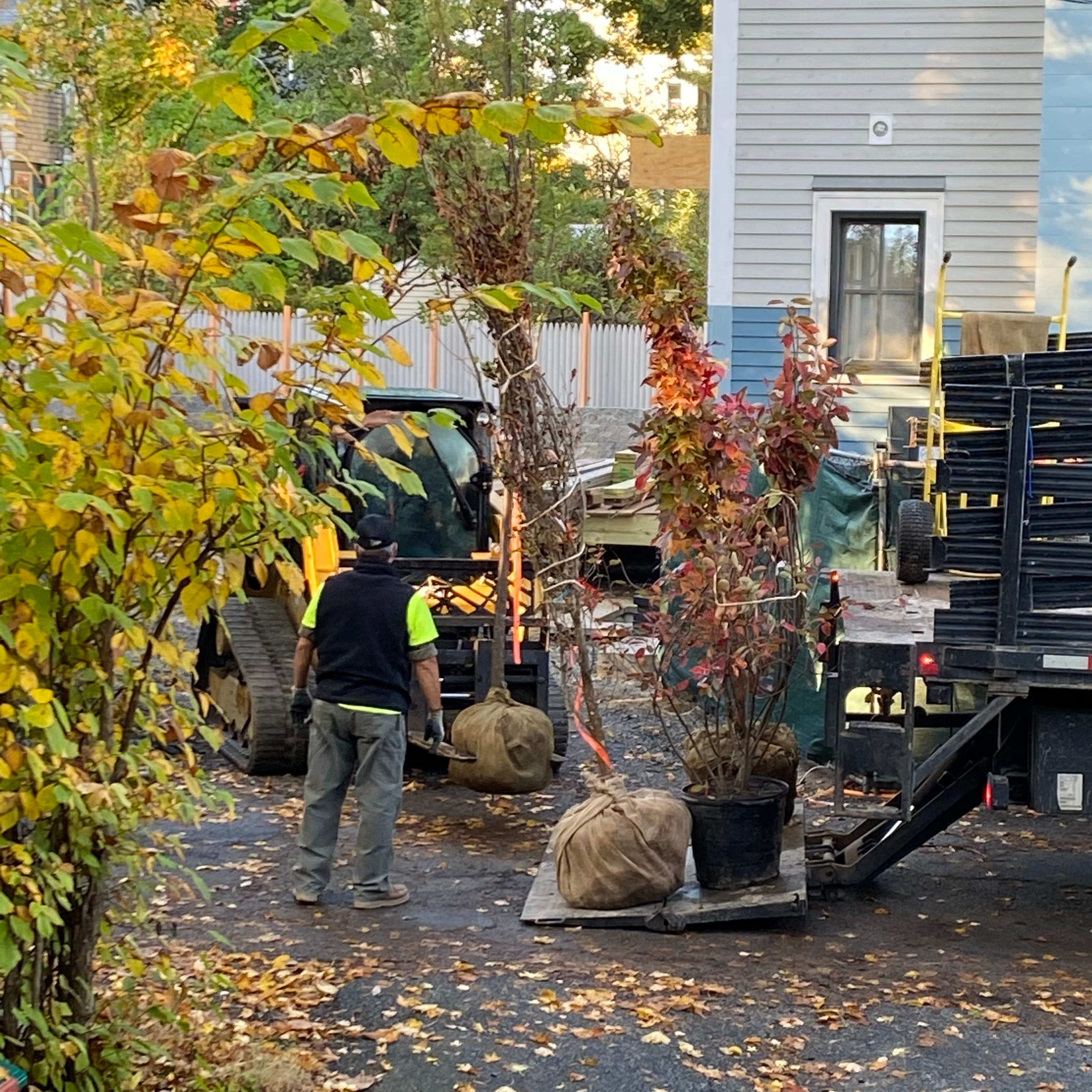 Trees are going in across the road now. I’d expand on the idea of new trees going in with their leaves already turned to autumn hues, but it’s maybe a bit much. I’m not feeling it this morning.