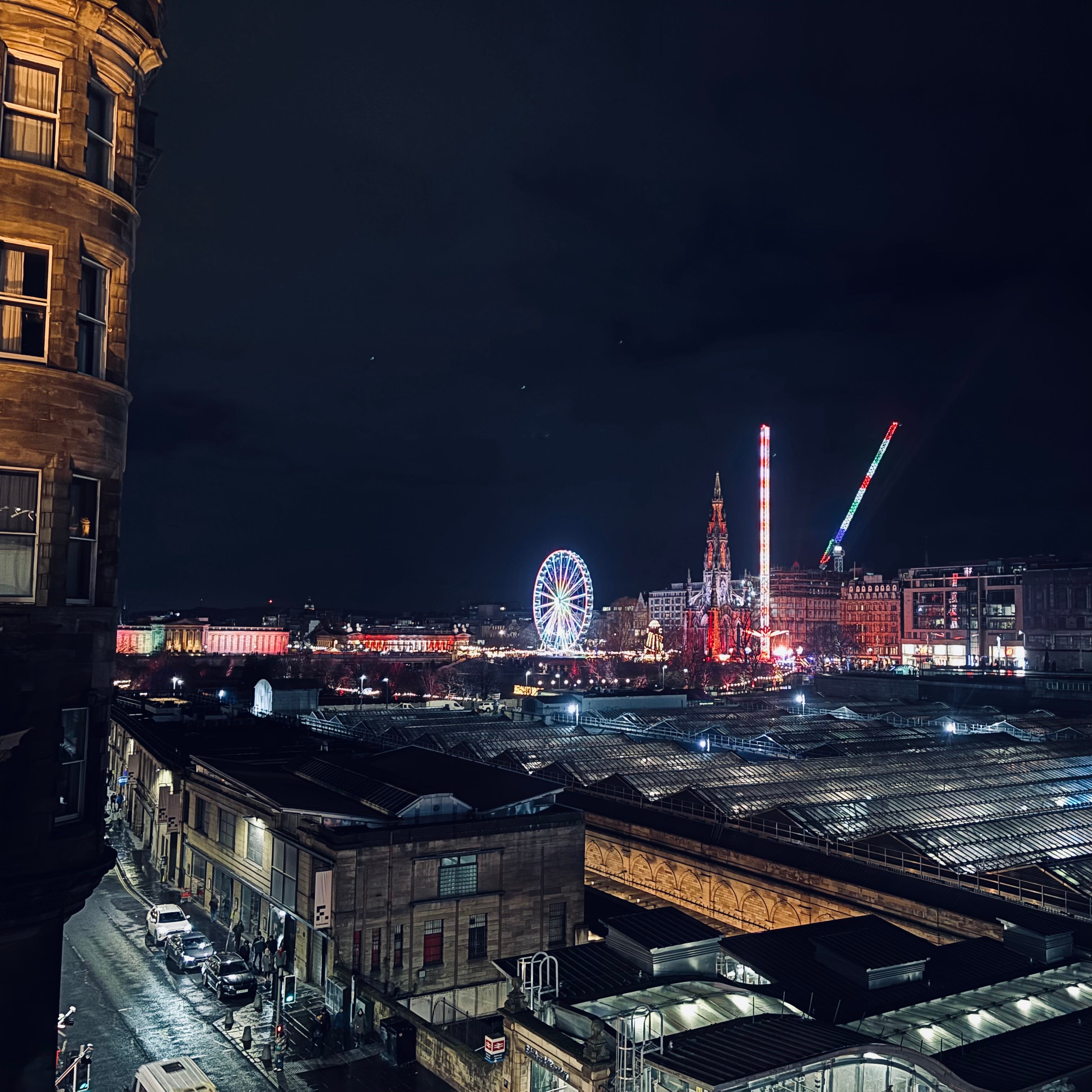 Edinburgh in December is gray. Just gray. The sun comes up, but not until 8:30. Then it goes down at 3:30 in the afternoon.