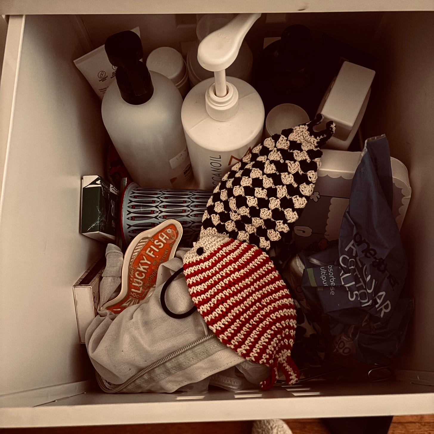 It’s strange and sad to me that I’ll never be in that bathroom again. It made me so happy. All the fishy decor is in a drawer here in my room at Mitra’s, for the moment. It makes me sad to see it out. It reminds me of what I lost. More than I’m already reminded.