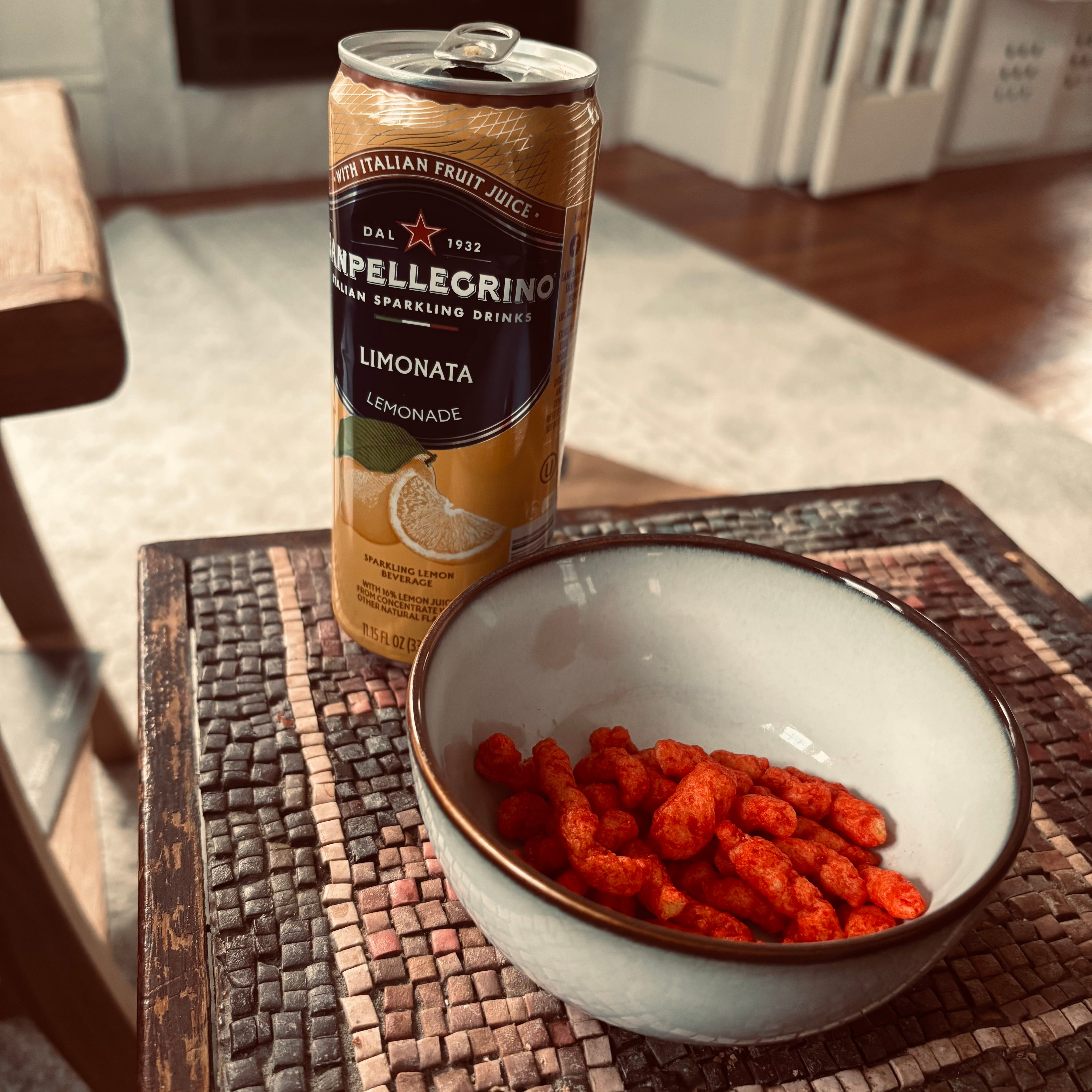 What’s messier than Flamin’ Hot Cheetos, and what better way to amp up the pain and pleasure than by washing them down with bitter limonata? Today is a good day.