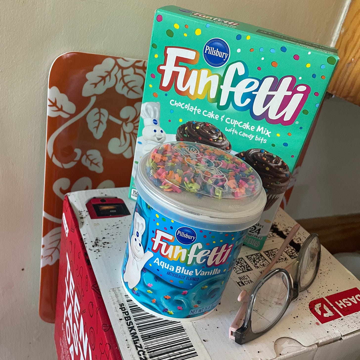 “I got Funfetti chocolate cake mix and blue Funfetti frosting.”