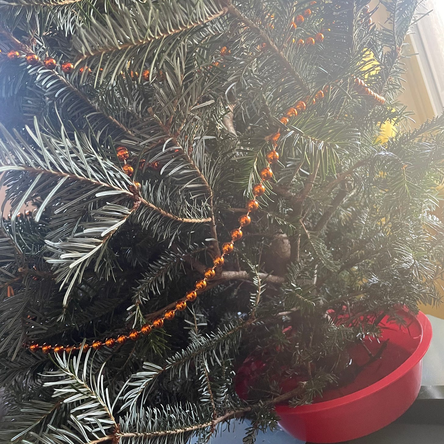 I surprised the kid with a Christmas tree last night. A tabletop jobby that I grabbed at Whole Foods while I was buying ingredients for stew. I pulled our ornaments out of the storage on the way home.